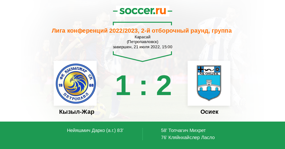 В этой паре фаворитом, на мой взгляд, является Осиек. Кызылжар даже внутри Казахстана выступает не очень уверенно. При этом обе команды достаточно активны в атаке. Так что, предполагаю, что болельщики увидят не меньше трёх голов.