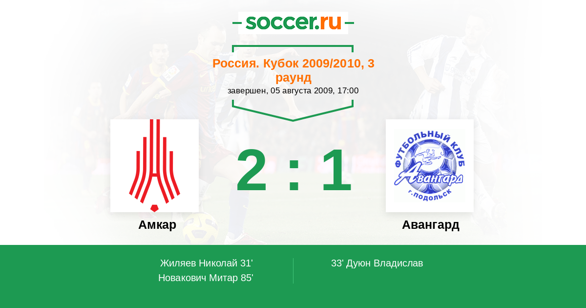 Протокол матча Амкар против Авангард