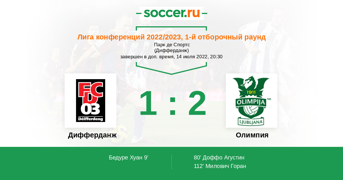 Протокол матча Дифферданж против Олимпия
