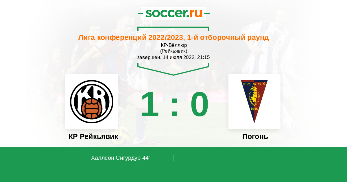 Протокол матча КР Рейкьявик против Погонь
