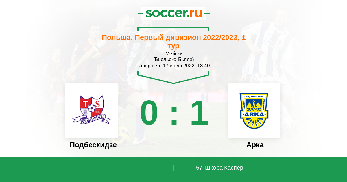 Протокол матча Подбескидзе против Арка