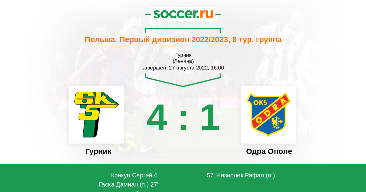 Протокол матча Гурник против Одра Ополе