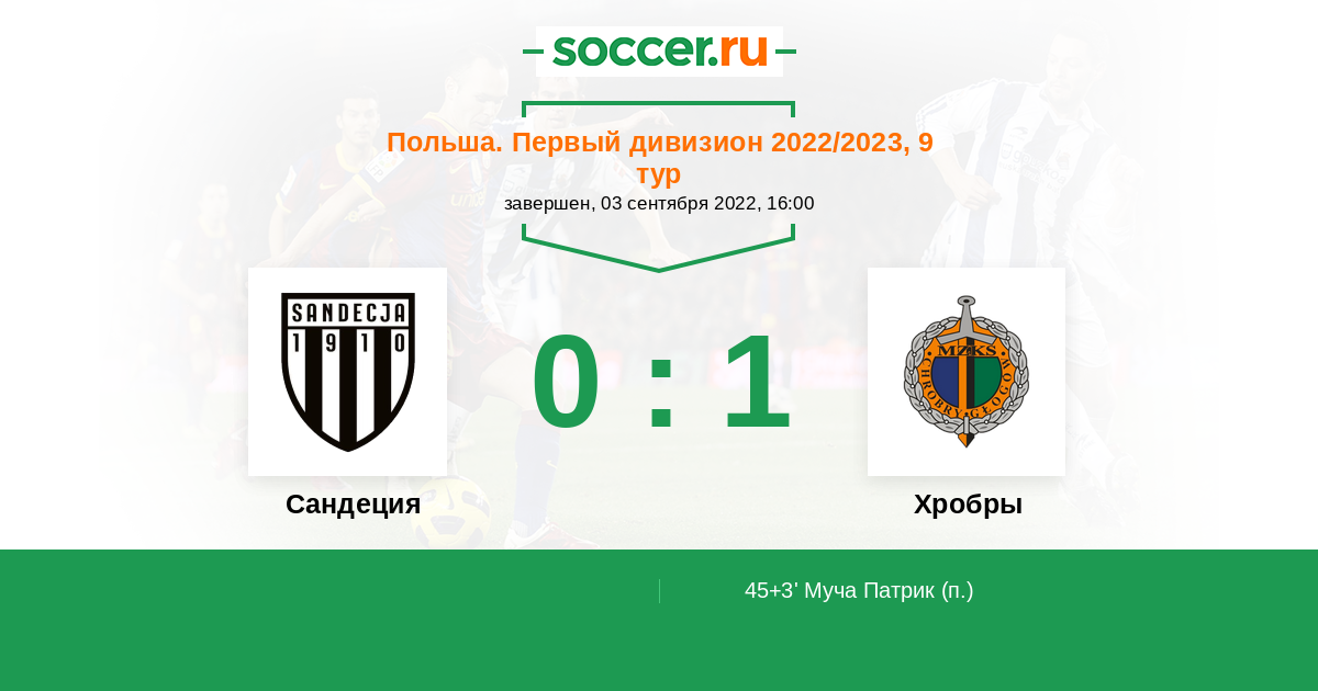 Протокол матча Сандеция против Хробры