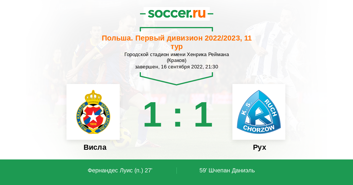 Протокол матча Висла против Рух