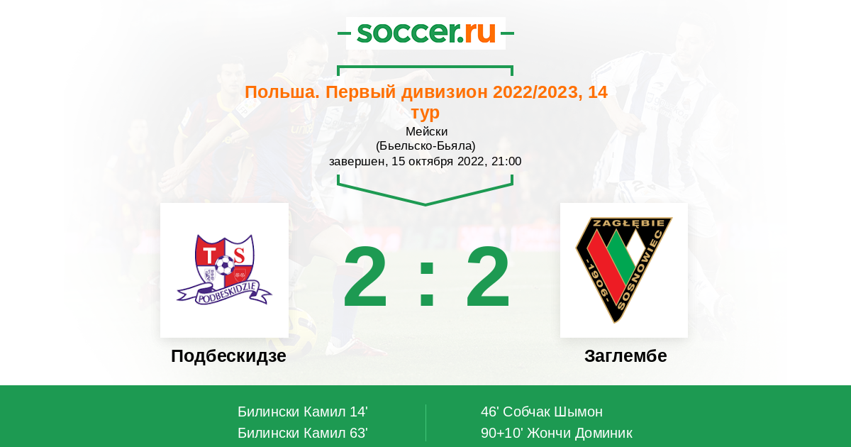 Протокол матча Подбескидзе против Заглембе