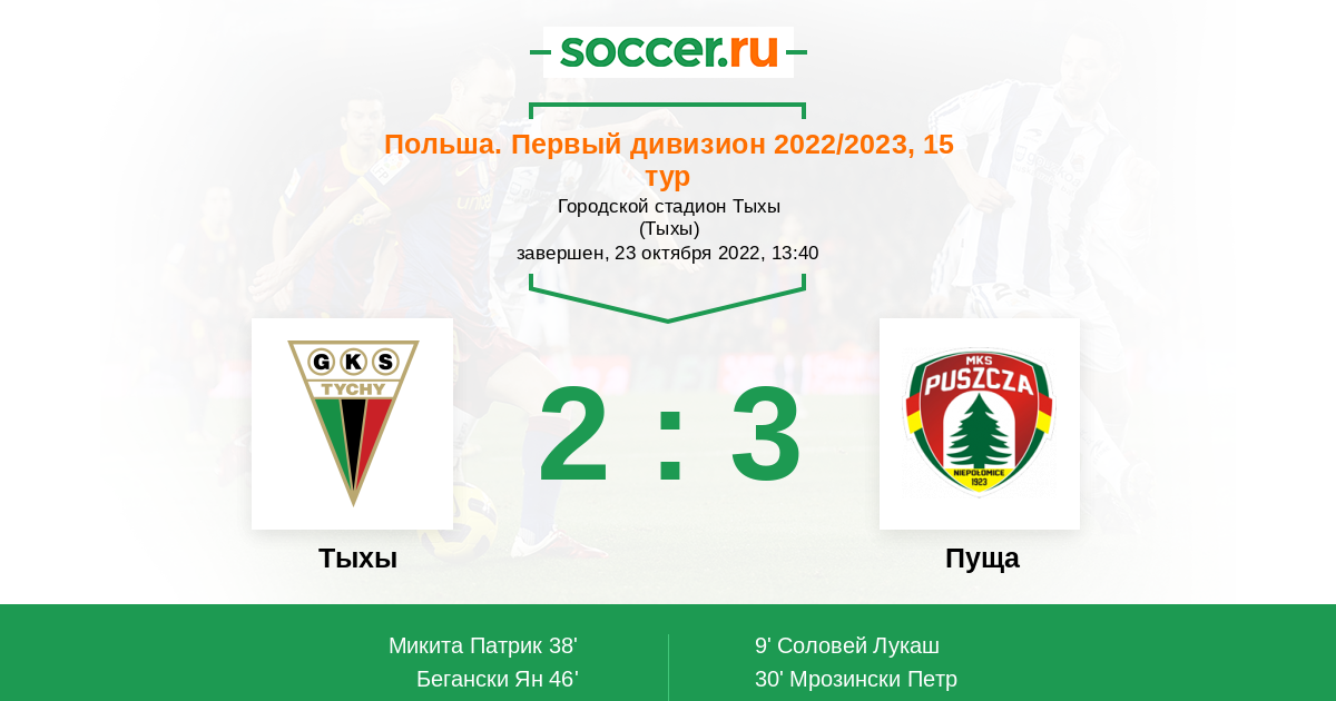 Протокол матча Тыхы против Пуща