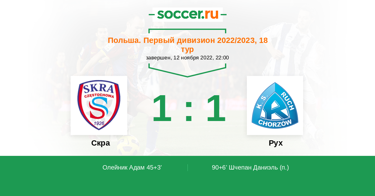 Протокол матча Скра против Рух