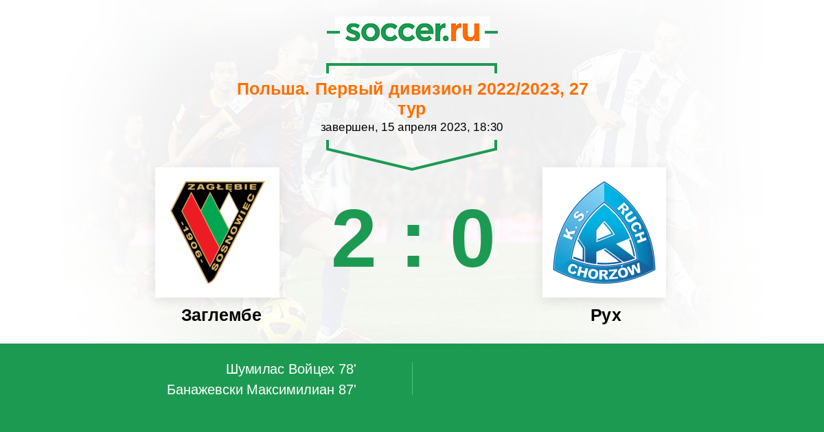 Протокол матча Заглембе против Рух