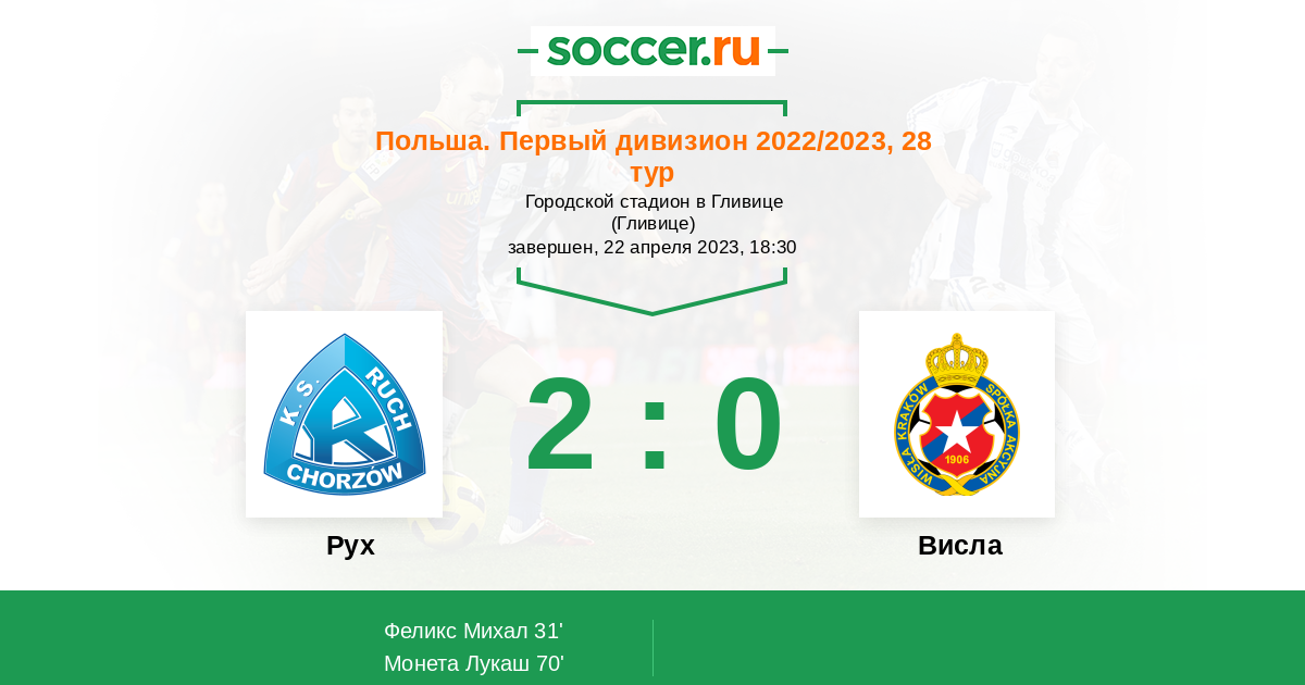 Протокол матча Рух против Висла