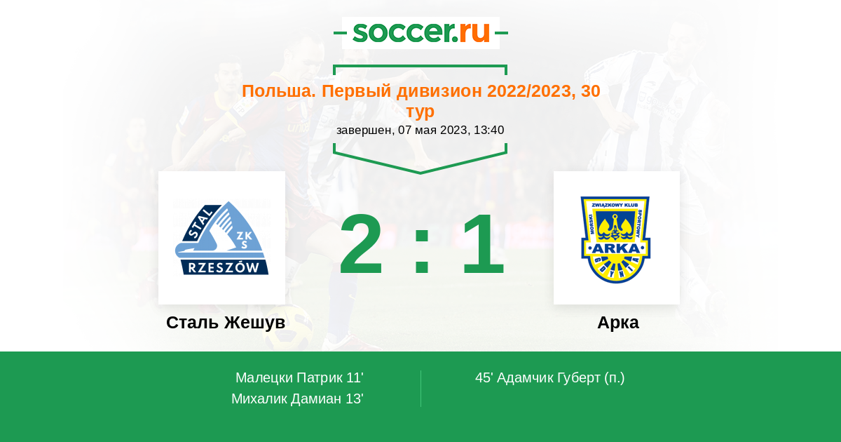 Протокол матча Сталь Жешув против Арка