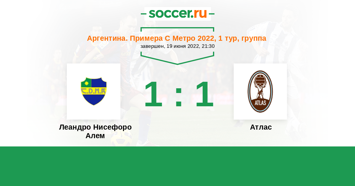 Аргентина. Примера С Метро 13.02.2022 Атлас Логотип футбольный клуб Атлас (Хенераль Родригес) 1:1 Логотип футбольный клуб Леандро Нисефоро Алем (Буэнос-Айрес) Леандро Нисефоро Алем
