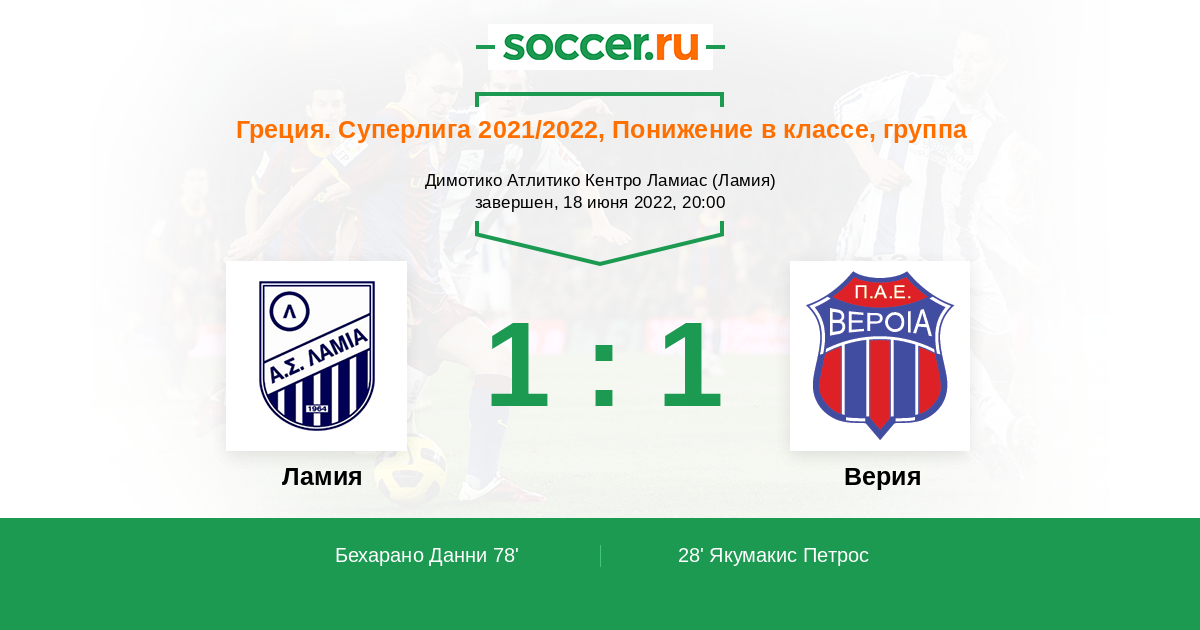 Протокол матча Ламия против Верия