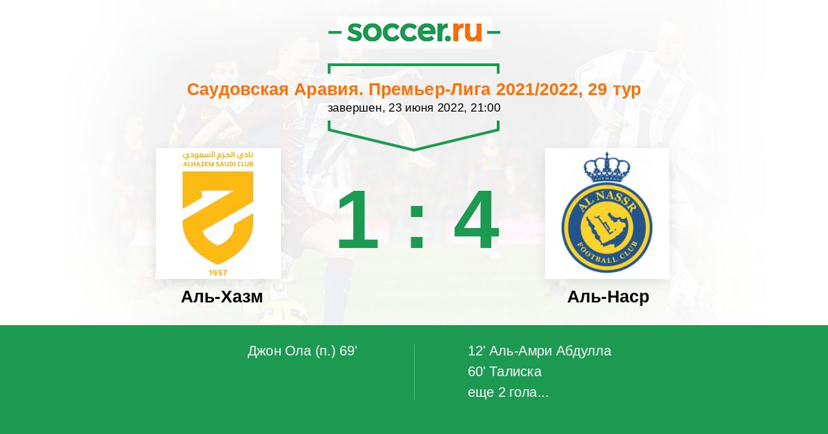 Протокол матча Аль-Хазм против Аль-Наср
