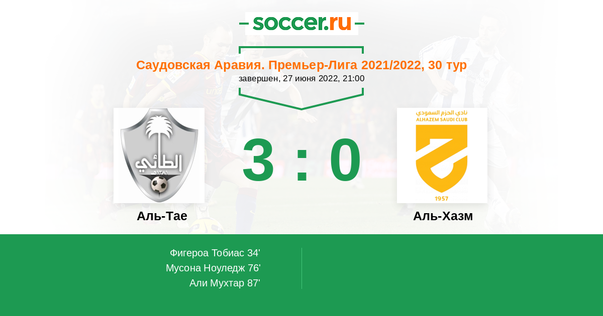 Протокол матча Аль-Тае против Аль-Хазм