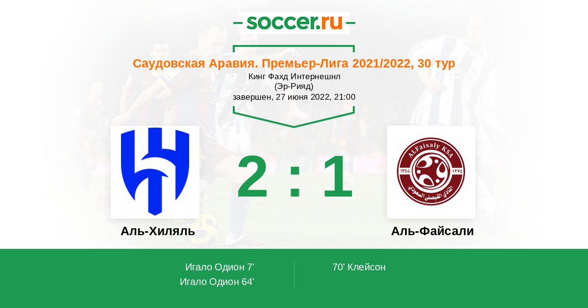 70' (2:1) Клейсон (37) (Кааби Халид (77))