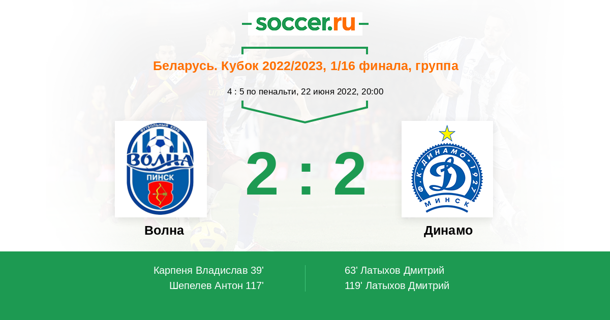Протокол матча Волна против Динамо
