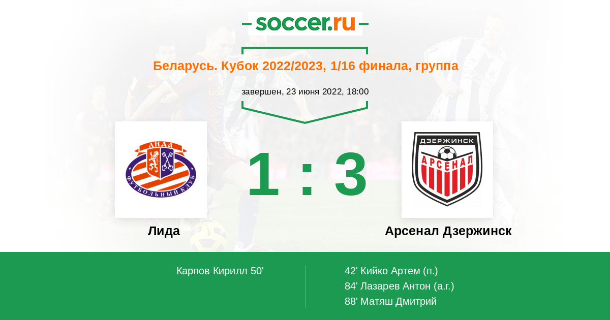 Протокол матча Лида против Арсенал Дзержинск