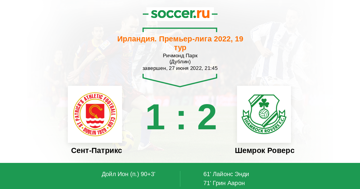 Протокол матча Сент-Патрикс против Шемрок Роверс