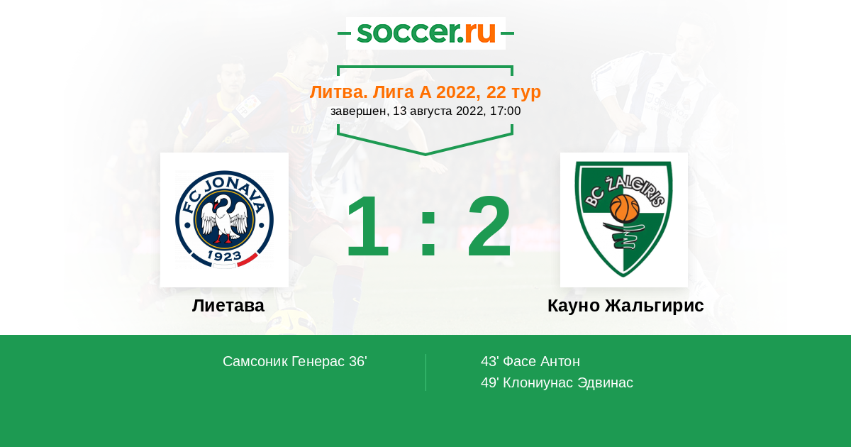 Протокол матча Лиетава против Кауно Жальгирис