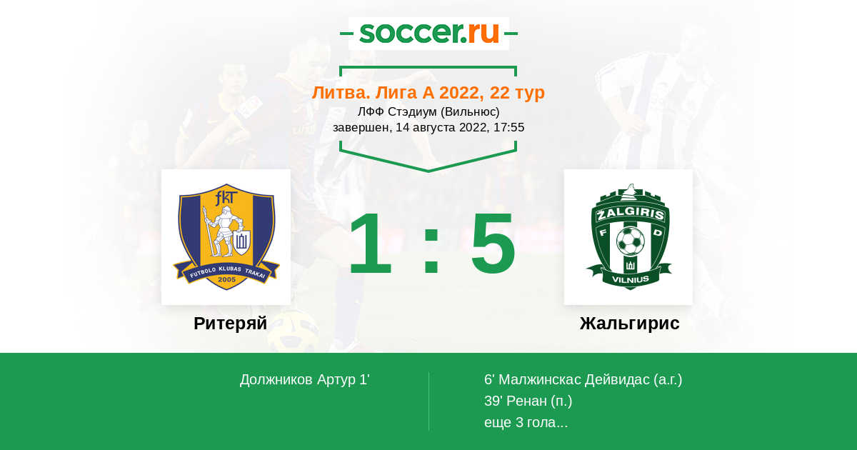 Протокол матча Ритеряй против Жальгирис