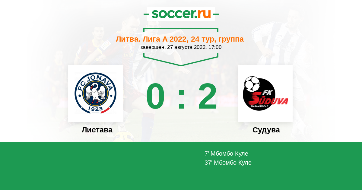 Протокол матча Лиетава против Судува