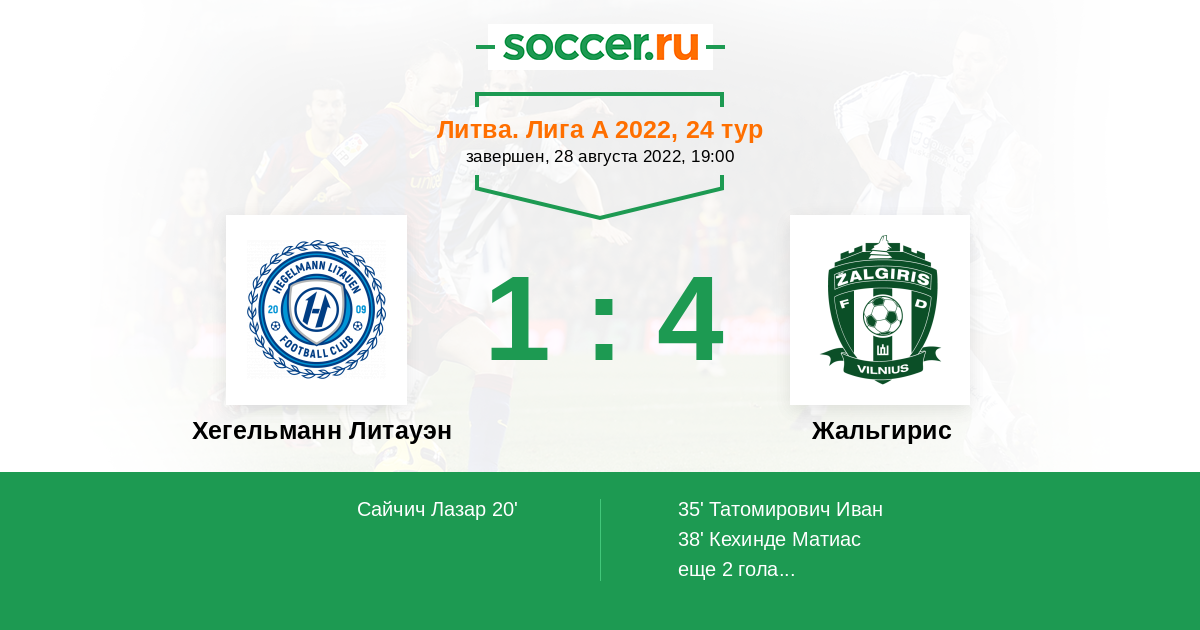 Протокол матча Хегельманн Литауэн против Жальгирис