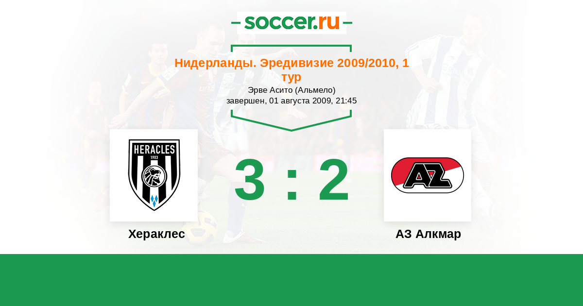 Нидерланды. Эредивизи 09.08.2014 Хераклес Логотип футбольный клуб Хераклес (Алмело) 0:3 Логотип футбольный клуб АЗ Алкмар АЗ Алкмар