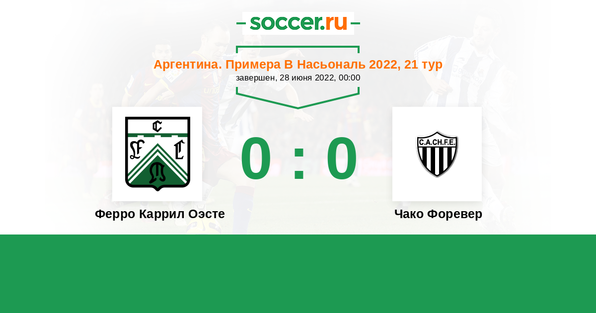 Протокол матча Ферро Каррил Оэсте против Чако Форевер