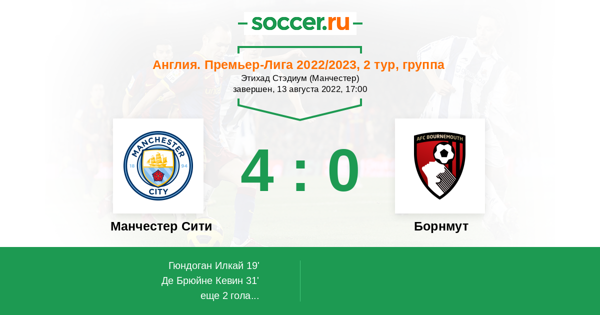 Протокол матча Манчестер Сити против Борнмут