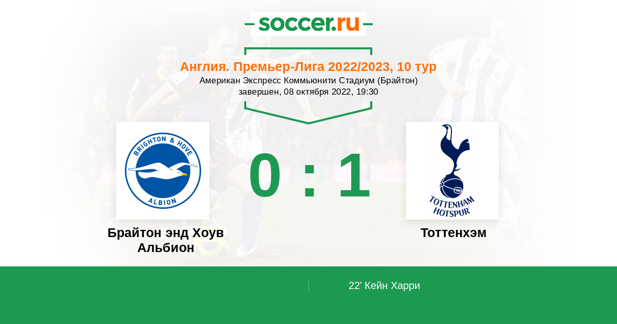 Протокол матча Брайтон энд Хоув Альбион против Тоттенхэм