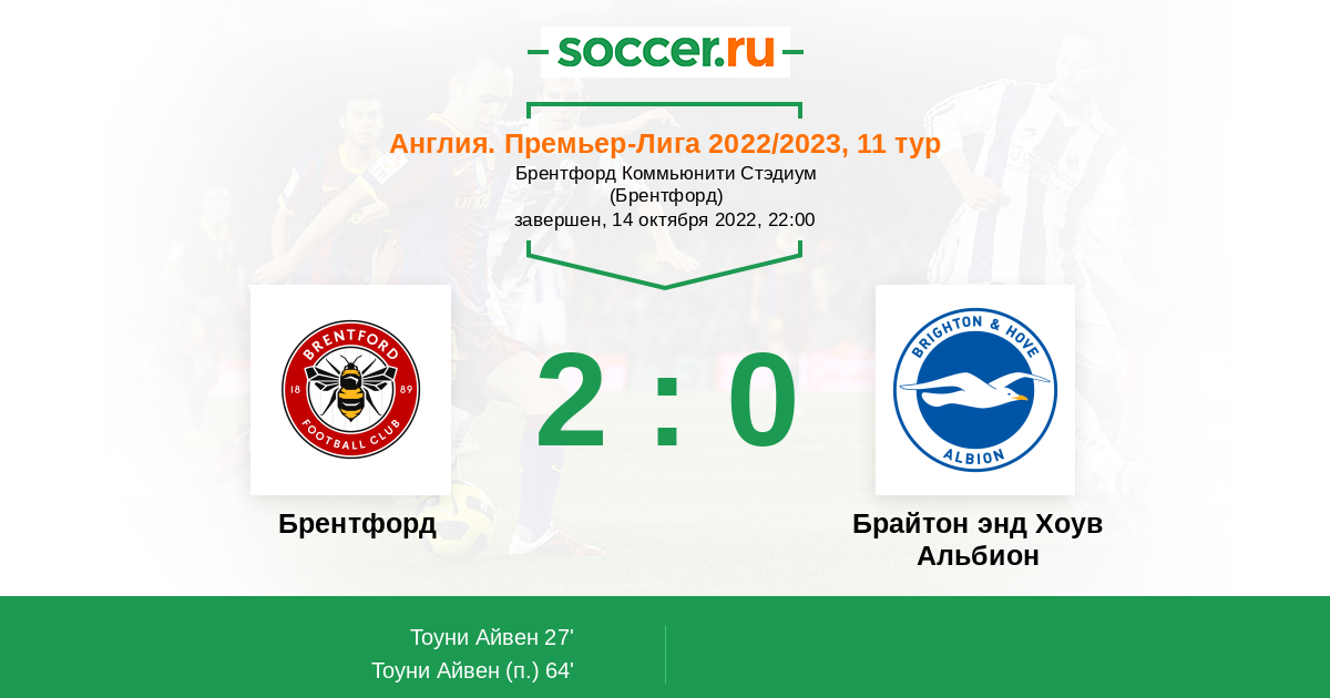 Протокол матча Брентфорд против Брайтон энд Хоув Альбион