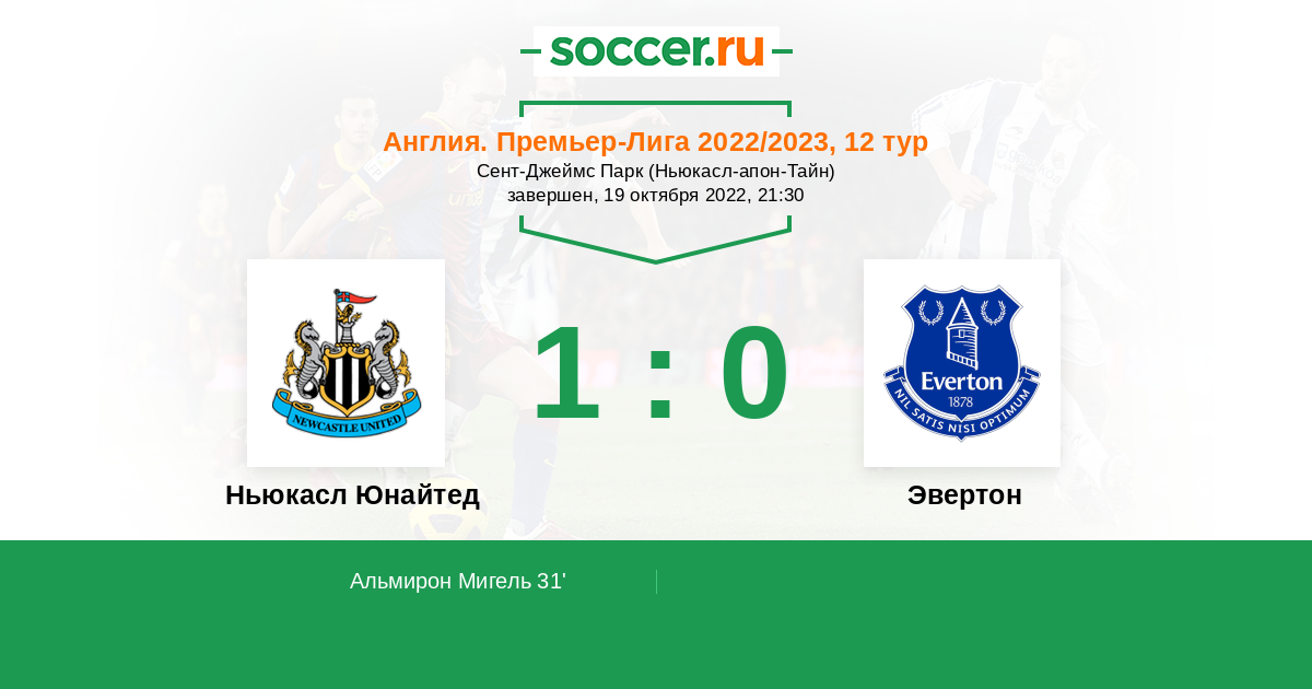 Протокол матча Ньюкасл Юнайтед против Эвертон