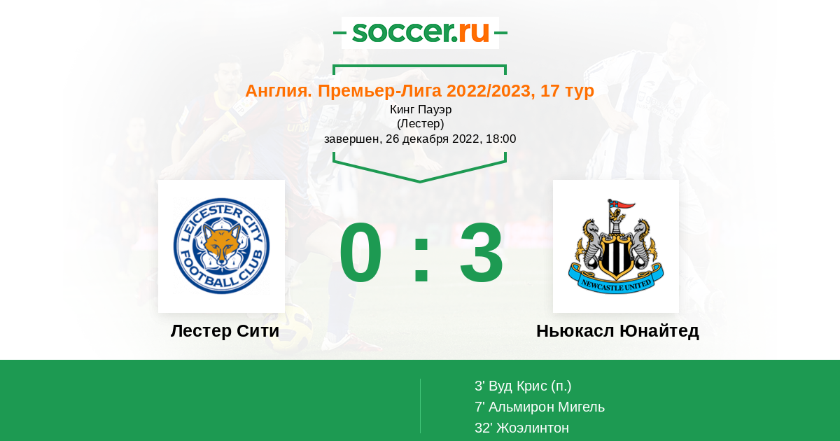 Протокол матча Лестер Сити против Ньюкасл Юнайтед