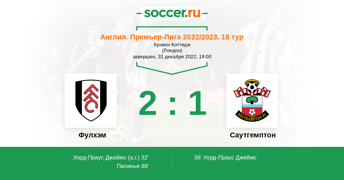 Фулхэм справедливо является фаворитом. Он и по сезону выступает лучше своего соперника, и последний матч провел уверенно, а тут еще и дома сыграет. "Дачники" должны тут крушить оборону Саутгемптона. В этом сезоне они показывают отличную игру в атаке, наколотили уже 27 мячей. Только у клубов из топ-4 статистика круче.