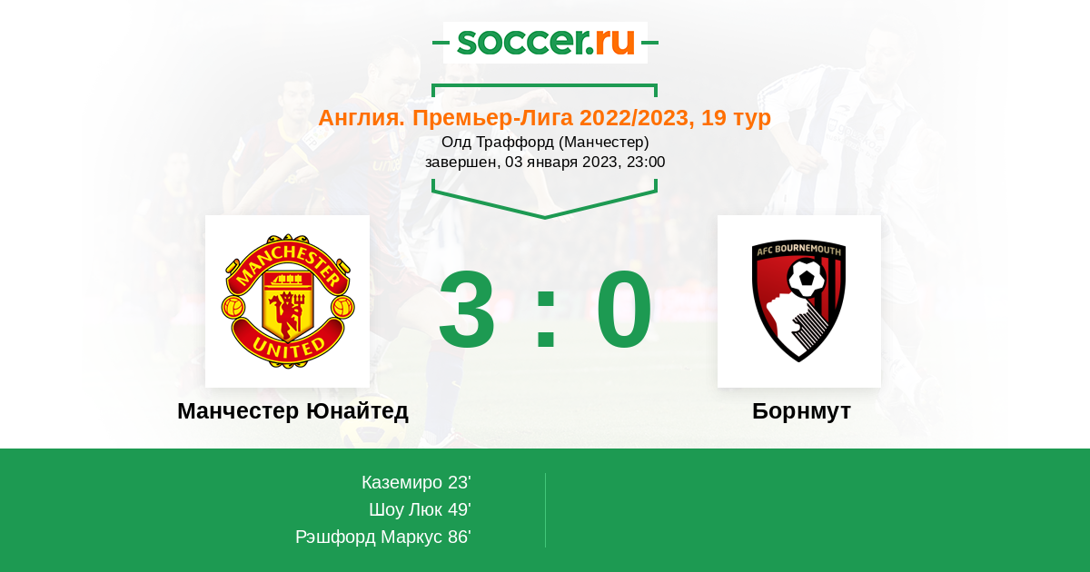 В этом матче между командами "Манчестер Юнайтед" и "Борнмут" ожидается интересная игра. Хозяева преобразились после паузы в связи с чемпионатом мира. Команда охотно атакует да и в обороне действует убедительно, "Борнмут" не та команда сейчас которая сможет забить хозяевам, но они будут стараться это сделать. Удачи
