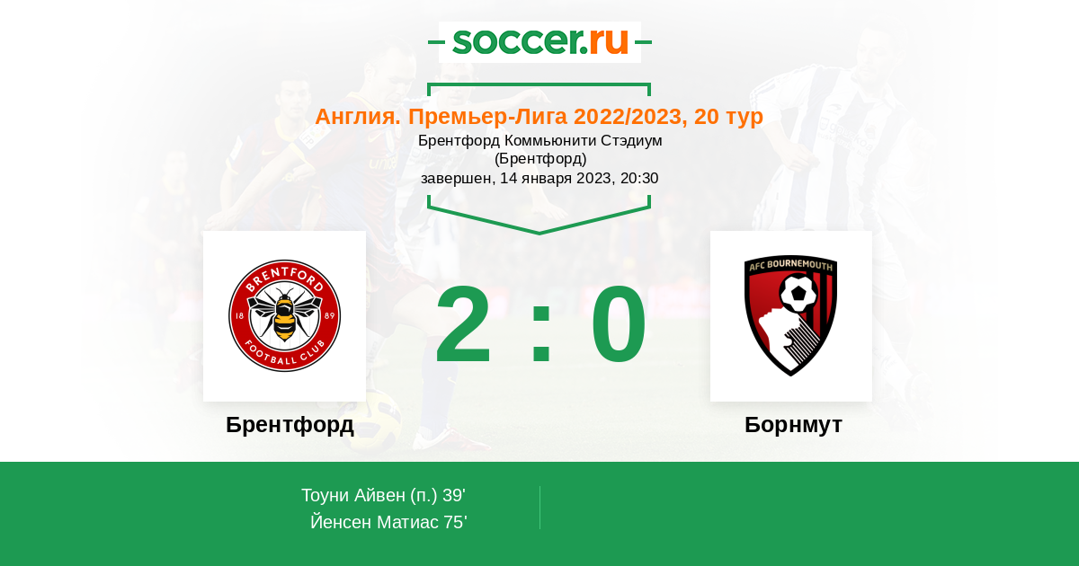 Протокол матча Брентфорд против Борнмут