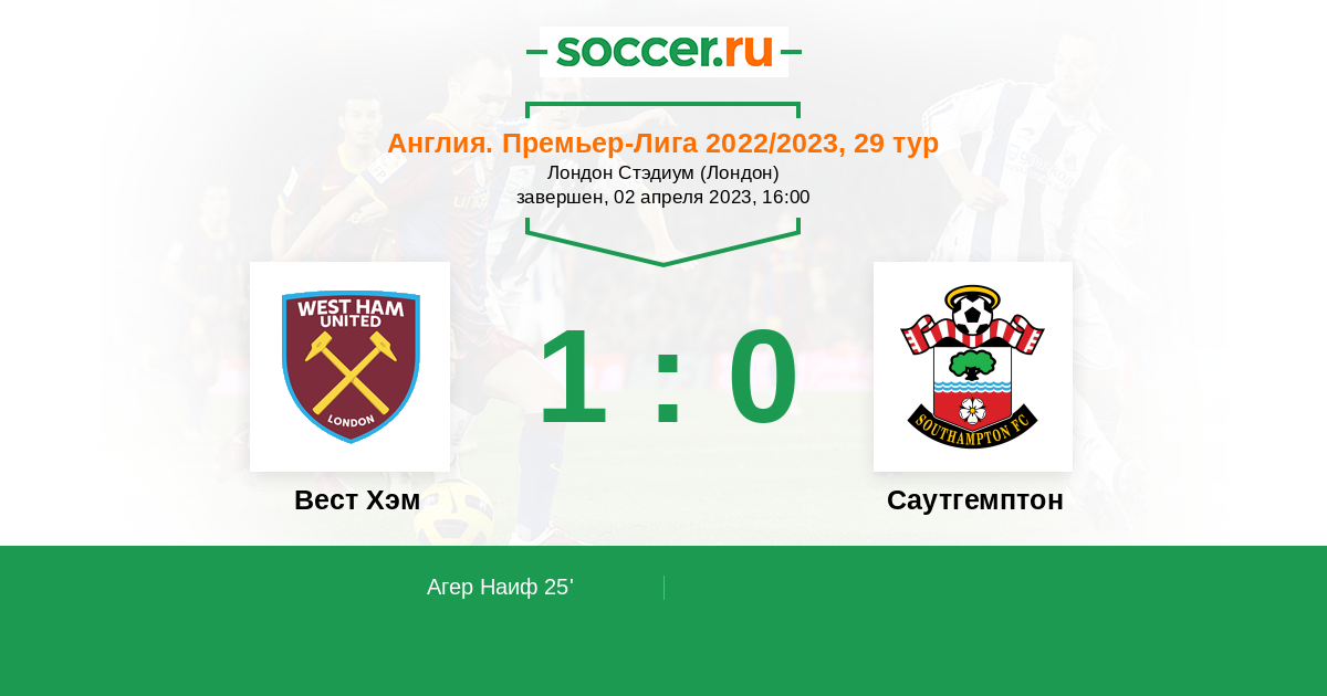 Протокол матча Вест Хэм против Саутгемптон