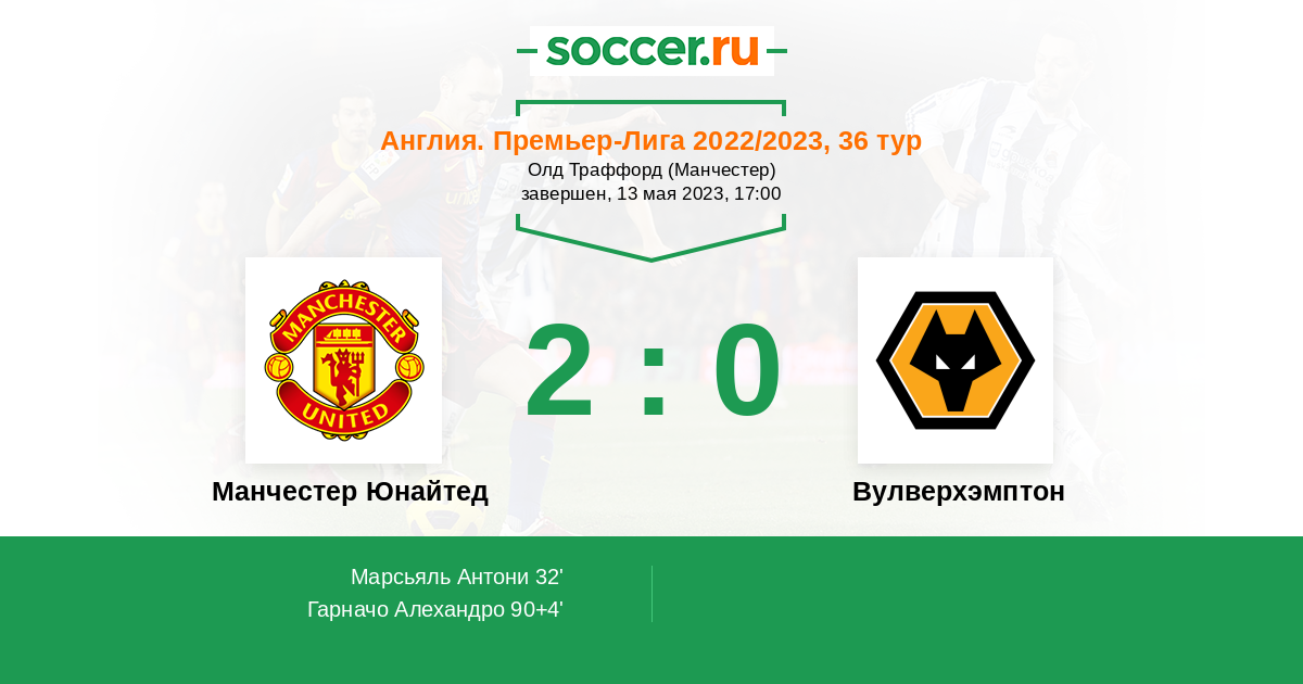 Протокол матча Манчестер Юнайтед против Вулверхэмптон