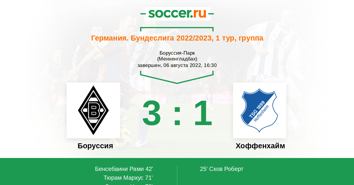 В этом матче между командами Боруссия и Хоффенхайм набольшое преимущество на стороне хозяев поля. Которые у себя дома всегда играют достаточно хорошо при поддержки своих болельщиков. Прогноз на этот матч, тотал больше в 1-м тайме -2. Удачи