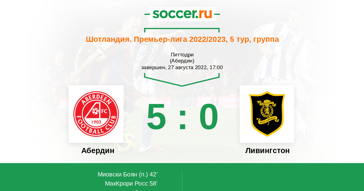 Протокол матча Абердин против Ливингстон