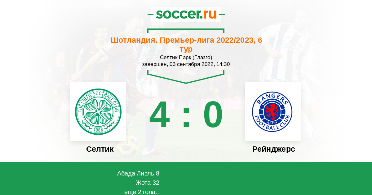 Протокол матча Селтик против Рейнджерс