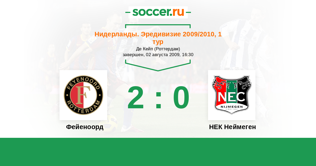 Нидерланды. Эредивизи 05.10.2008 Фейеноорд Логотип футбольный клуб Фейеноорд (Роттердам) 0:2 Логотип футбольный клуб НЕК Неймеген НЕК Неймеген