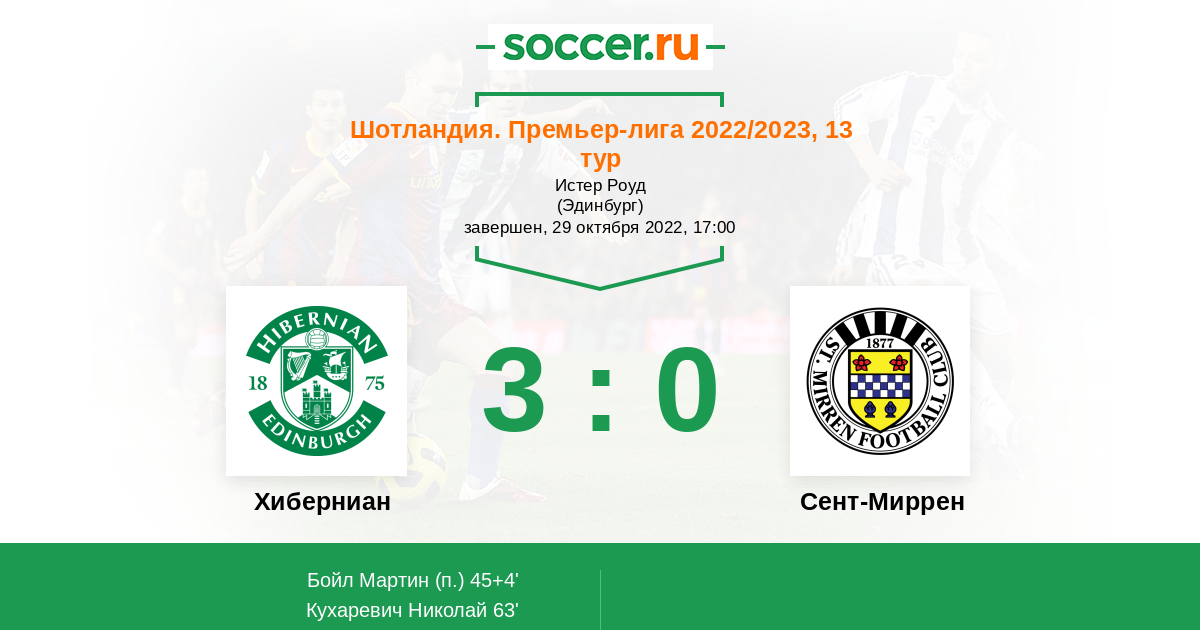 Протокол матча Хиберниан против Сент-Миррен