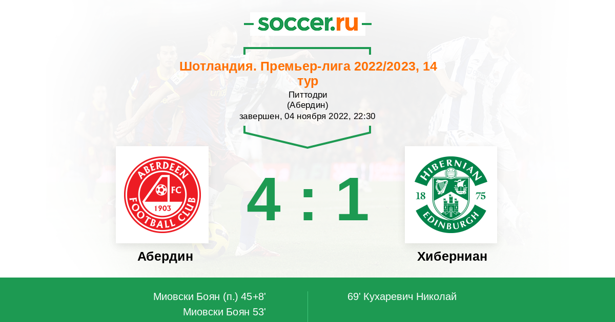 Протокол матча Абердин против Хиберниан
