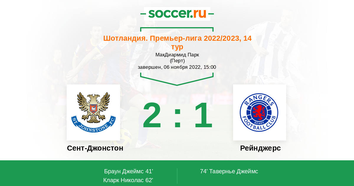 Протокол матча Сент-Джонстон против Рейнджерс