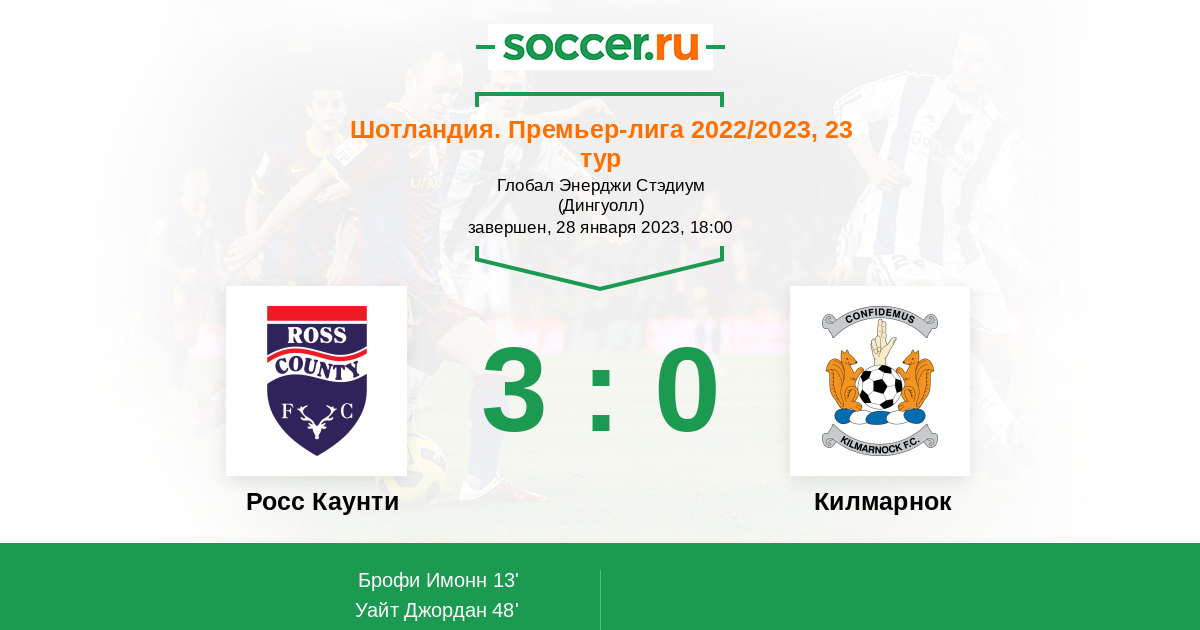 Протокол матча Росс Каунти против Килмарнок