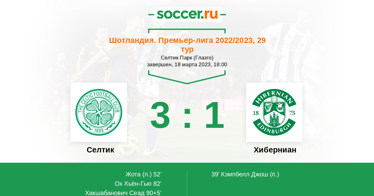 Протокол матча Селтик против Хиберниан