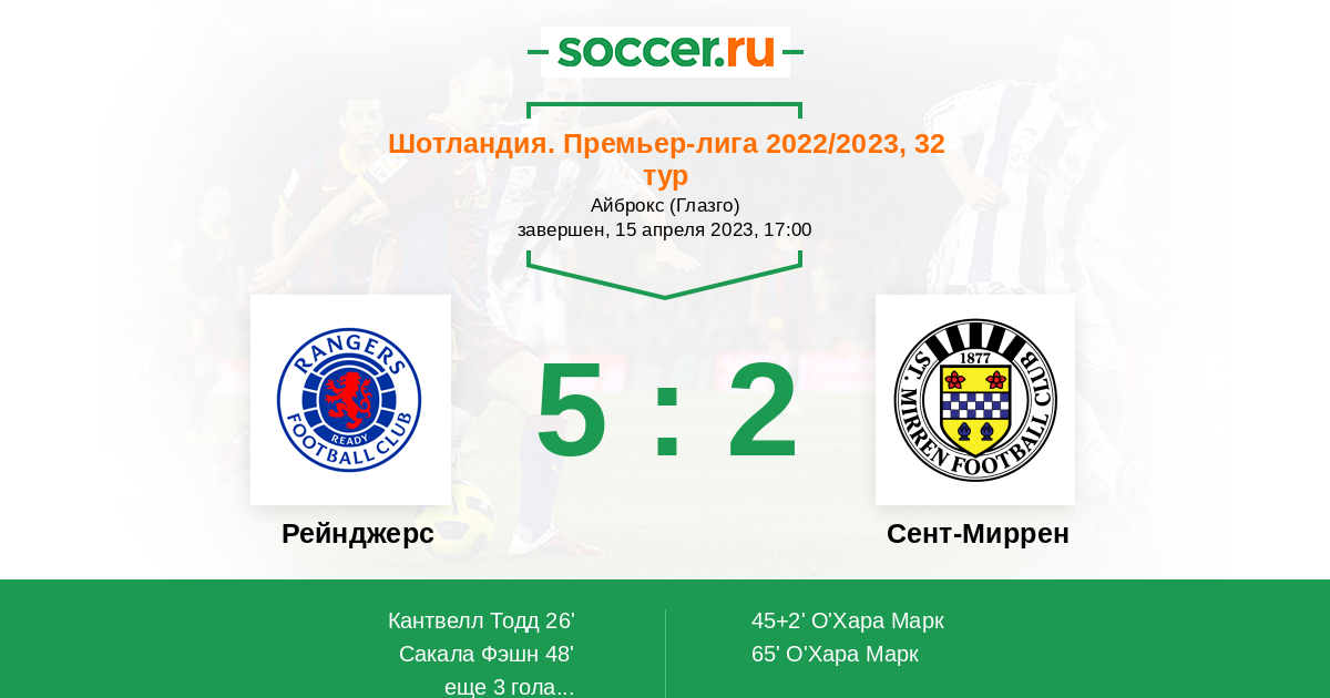 Протокол матча Рейнджерс против Сент-Миррен