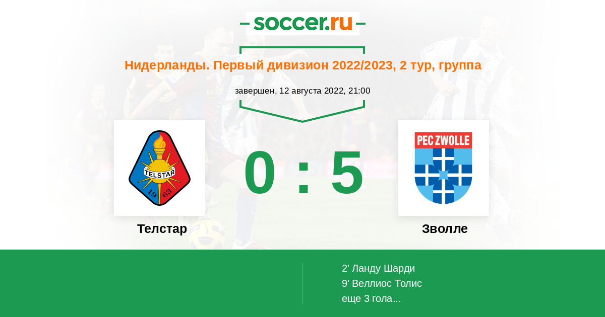 Протокол матча Телстар против Зволле