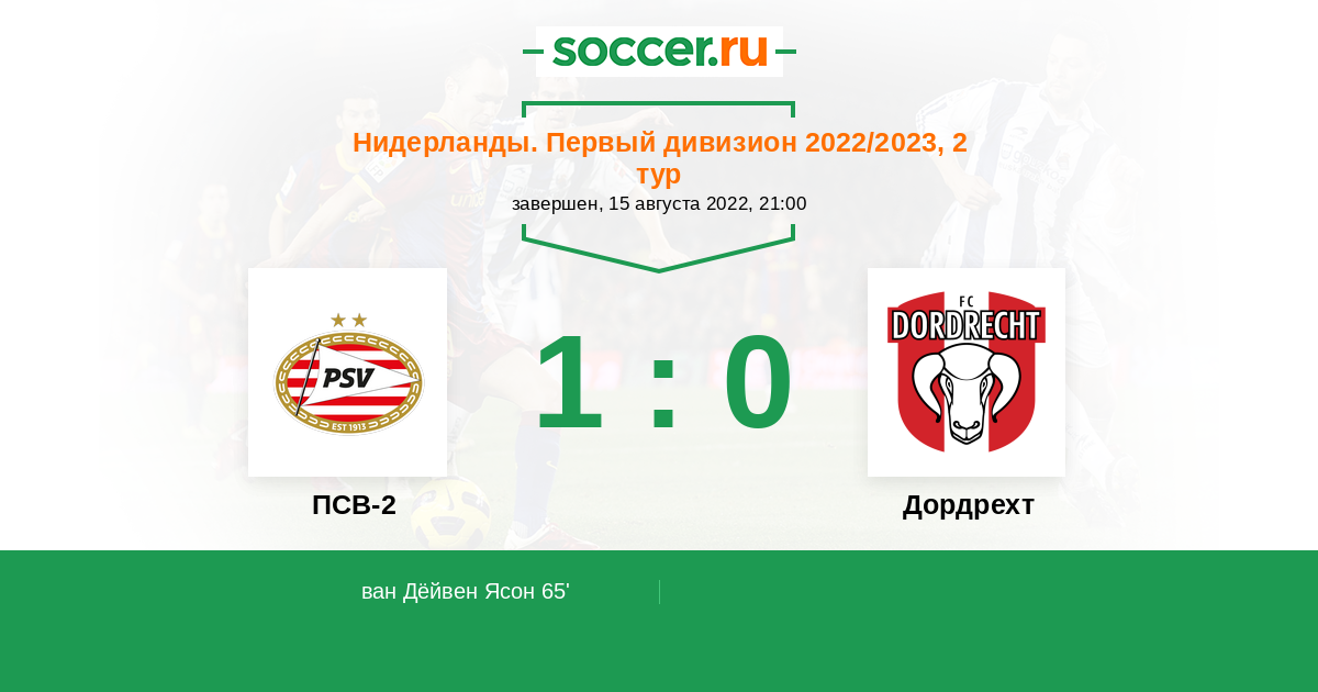 Протокол матча ПСВ-2 против Дордрехт